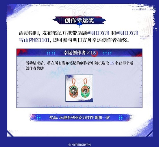 《明日方舟》小红书创作者应援计划 - 雪山降临1101 正式开启,发布笔记即可参与现金瓜分!完成指定任务参与抽奖,游戏道具与周边等丰厚奖励等你来拿!