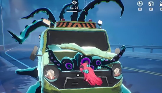 目标车辆外观极具辨识度,车身为深绿色涂装,车头显著位置带有章鱼图案标识。在异环的世界中,这辆卡车不仅是视觉上的异象代表,更承载着高难度的对抗内容。触发后无需主动搜寻,车辆将自动驶入道路中央开始移动。此时玩家需准备进入第一阶段——拦截环节。当章鱼车距离约50米时,使用滑铲技能迅速冲至车道正中心,才能成功将其逼停。偏离中心位置可能导致车辆绕行,造成拦截失败。