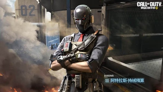 阿特拉斯-持械精算身穿金属质感的黑色盔甲,并以黑色面具完全遮住面部,搭配红色领带和战术背心,从腰间工具到精密配件,利落又务实!