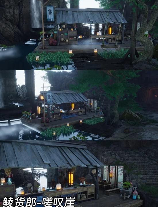 ①嗟叹崖:传送栖鸟岩界碑,右转从有鹈鹕的水池跳下去区域,个人推荐建造在旁边水池位置;