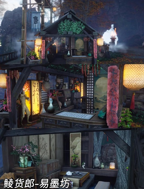 ③易墨坊:传送沦波坊界碑,界碑附近区域,个人推荐建造在高架子旁可以和环境融为一体;