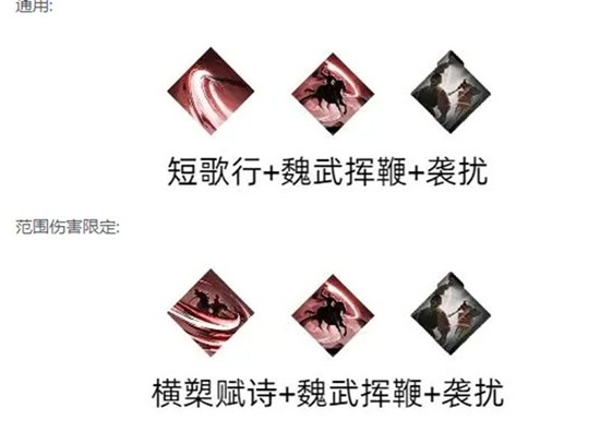 在技能选择方面,魏续可以携带破甲或猛击。破甲能降低敌方防御,猛击则提升单体爆发,两者都能与曹操的增益效果形成良好配合。曹操推荐使用短歌行和魏武挥鞭,短歌行在补充伤害的同时还能回复战意,兼顾辅助与续航;魏武挥鞭则提供关键的增伤buff。宋宪的技能以提升机动性和补充伤害为主,确保在魏续和曹操创造输出环境后能迅速完成收割。