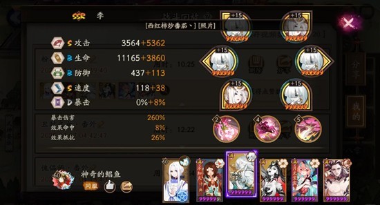 4.优先保障小美和季开技能,其他式神主要给她俩卸妆。注意boss的回合,boss出手之前层数差距确保缩到最小,哪怕季开卸妆也行,但是小美一定要一直用3技能,直到小怪全死完。