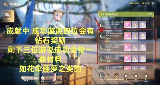 游说另外三个自由搭配师,不会获得钻石奖励,但是会给一些材料,如花伞藤萝之类;