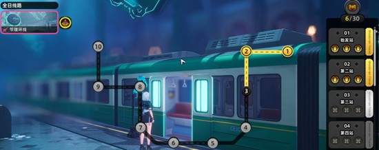 轨外之境的核心玩法围绕搭乘电车展开,整个流程共设有10个站点,每个站点对应一个独立关卡。玩家需要依次通过这10个关卡才能完成全部挑战。每通过一关,若达成完美条件,即可获得三枚猫头鹰徽章以及专属奖励。这些徽章不仅是进度的象征,也将在后续的资源兑换中发挥重要作用。随着关卡推进,敌人的强度和机制复杂度也会逐步提升,因此合理规划战斗节奏至关重要。