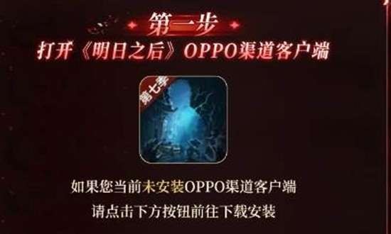1.如果你还没有安装OPPO渠道客户端,请先下载并安装。你可以通过OPPO手机的应用商店搜索《明日之后》并下载对应的OPPO渠道客户端。