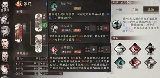 当张辽仕途达到精通五时,可以解锁第三个计策孔,装备更多计策让他在战斗中拥有更丰富的战术选择。达到精通六时则能解锁军势技能,其疾如风是一个泛用型军势技能,能够全面提升军队战斗力,特别适合速攻关卡。
