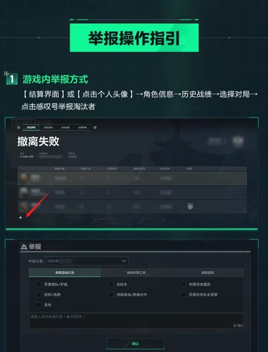 游戏内最顺手:结算界面右手边灰色感叹号,点进去直接勾选“使用作算工具”,填80字内说明,比如“AK无后+锁头,50米外秒三人”,再附击杀回放时间戳,系统立刻把数据送进G.T.I.安全后台。错过结算也别慌,头像→角色信息→历史战绩→找到对局→感叹号一样能补举报,24小时内都有效。