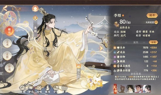 4.战斗开始时,李煜会将自己的暴强转化为效果命中。