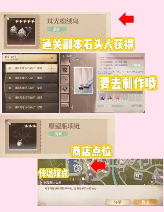 可用单品:珠光棉绒鸟(副本获得设计图)愿望瓶项链(图中商店购买)