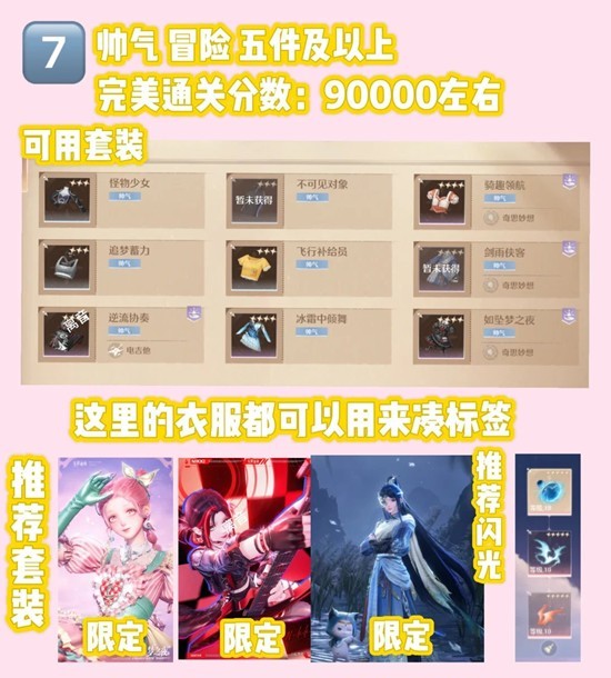 完美要求:5件及以上帅气+冒险