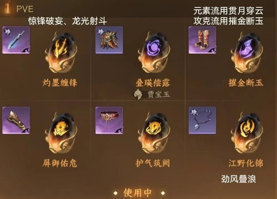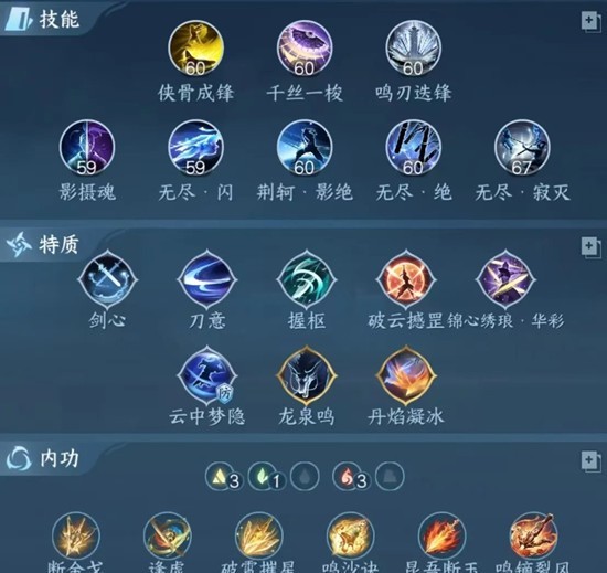 内功仅供参考,可根据自己的词条灵活搭配。鸣镝裂风、鸣沙诀必带,昆吾断玉不是词条特别不好的话,也需要带一下
