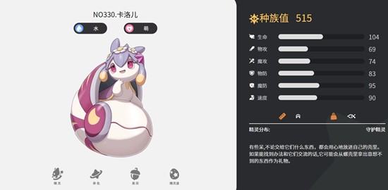 洛克王国世界的卡洛儿是近期备受关注的水属性宠物之一,许多玩家在培养过程中都想了解她的种族值表现与技能机制。作为由田螺逐步进化而来的最终形态,卡洛儿不仅外形呆萌可爱,还具备出色的战斗潜力。她的总种族值高达623点,在众多宠物中属于上游水平,尤其在防御端表现突出。接下来我们将详细解析卡洛儿的各项属性与技能搭配,帮助你在洛克王国世界的冒险中更好地运用这位高防御型水系战宠。