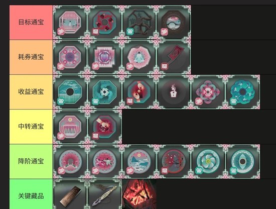 一般来说通宝价值可以按商店价格分为4块/8块/12块三个级别。钱盒里自带的初始通宝和所有2字通宝(如苦寒、霖雨)都是4块通宝,4块通宝在筹谋交换只能换到4块通宝,我们一般不用它进行交换。
