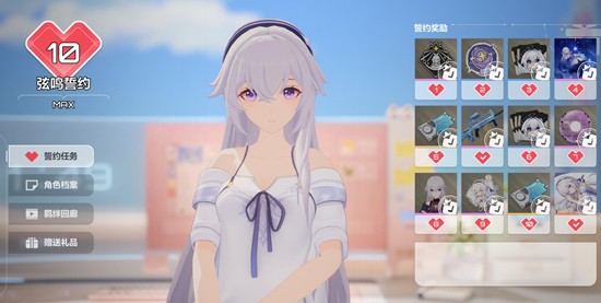 角色好感度等级从1级“起源之初”到10级“弦鸣誓约”,总共需要积累10000点好感度才能满级。每提升一级都会解锁新的专属剧情和资源奖励,包括头像框、语音片段、角色皮肤碎片等。因此,提升誓约等级不仅是情感培养的一部分,也直接关联到游戏内的实际收益。生日系统作为主要经验来源,其效率远超日常任务。