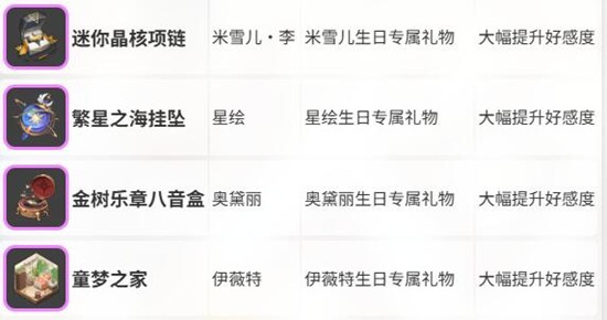 卡拉彼丘目前开放了米雪儿、星绘、香奈美、奥黛丽、绯莎、拉薇等9名角色的生日系统,每位角色在生日当天会解锁专属限时礼物。例如香奈美的“定制手麦”和奥黛丽的“金树乐章八音盒”,这些礼物在赠送后能大幅提升对应角色的誓约经验,是快速提升好感度的关键途径。生日活动期间通常伴随登录奖励或任务挑战,完成即可获得专属礼品,错过将无法再次获取。