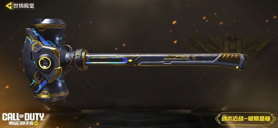 战术近战-破局圣槌的锤头厚重,中央凹陷圆形由金线勾勒,彰显力量底蕴。锤柄修长,蓝金线条点缀,优雅与力量并存。