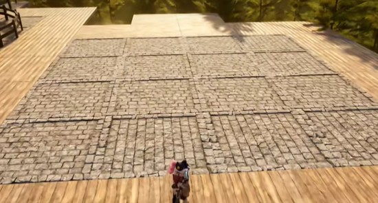 接着走到二层牧场背部位置,按照相同方式建造一层牧场。这一层的位置必须与上层完全对齐,尤其是立柱所在点要重合,才能实现真正的“折叠”式叠加。建造完成后从正面检查整体对齐状况,若有轻微偏差可适当调整。确认无误后,移除所有用于辅助的石柱,释放空间并完成最终结构整合。