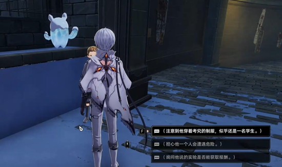任务开启的第一步是前往冰湖城东区,在地图上可以找到明确的任务标记点。到达指定位置后,你会遇见NPC西奥,与他展开首次对话。此时在选项中选择【注意他穿着考究的制服,似乎还是一名学生】,这一选项将为你的角色增加才智属性值,是提升素质的重要起点。紧接着,在后续对话中选择【我将诞生于境界岛重生之焰】,该选项会提升角色的混沌属性,为后续剧情发展埋下伏笔。