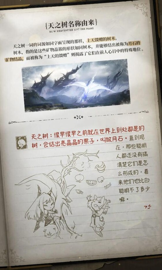 在遥远的过去,人类最初聚居于二重螺旋世界的南方,围绕天之树建立起最早的部落。这些族群依赖天之树生存,将其果实称为月石。月石表面泛着柔和的光芒,投入篝火后能显著增强火焰的持续时间与温度。这一特性使得人类得以驱赶夜行野兽,获得更安全的栖息环境。随着对火的掌控能力提升,人类开始发展工具、狩猎与建造,文明由此萌芽。天之树不仅是能量来源,也成为精神信仰的核心。