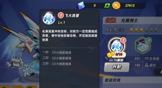光翼骑士的核心主动技能为飞火流萤,该技能释放时角色会化作流光向指定方向高速突进,路径上的敌人将受到击倒判定影响,落地后还会形成一片持续减速区域。这一机制不仅提供了出色的先手开团能力,也能在追击或撤退时实现战术性走位。随着角色阶数提升,飞火流萤的冷却时间逐步缩短,使得光翼骑士能够在短时间内多次发动位移与控制,极大增强了其在灌篮军团战场中的机动性与压制力。