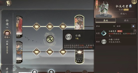 刘备的被动技能仁德是其核心机制之一。该技能可为全队提升18%的生命上限,这一加成直接增强整体容错率,无论是前排坦克还是后排输出都能从中受益。此外,每当队友释放技能时,刘备有35%概率为其恢复10%生命值,每回合最多触发三次。这个效果在蜀汉阵容中尤为实用,因为多数蜀将依赖主动技能打输出,技能释放频率高,从而提高了回血触发几率。随着刘备升至红将品质,该触发概率还会额外提升10%,进一步强化持续作战能力。