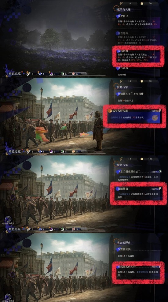 带启示队的时候,属性多叠【反应】,其次多叠【感知】更容易投出成功。