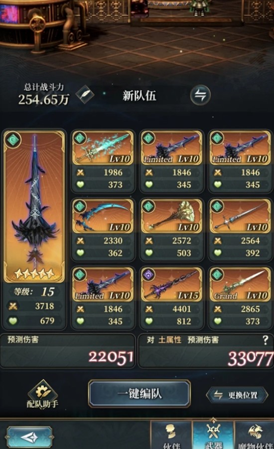 获得武器后,需在风之痕迹特有的武器盘中进行配置才能生效。武器盘由一把主手武器和九把副手武器组成,且只有与主角职业相符的武器才能装备。主手武器直接决定角色可使用的奥义技能,因此选择时需格外注意其技能效果是否契合队伍需求。副手武器则主要提供被动技能加成和攻击力提升,相同副手武器可重复装备,被动效果支持叠加,因此保留多把同名武器用于搭配比立即升星更为合理。