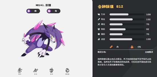 忽幽狸是幽灵加毒系的双属性宠物,进化后成为影狸,具备持续输出与状态施加能力。其特性“黑手”可在敌方登场时施加中毒效果,实现稳定的持续伤害。影狸的战术定位偏向于消耗战,配合减益类技能可逐步削弱对手战斗力。在持久战中,影狸能通过叠加中毒层数瓦解敌方节奏,尤其适合对抗高血量或回复型宠物,是中后期阵容中的重要续航点。