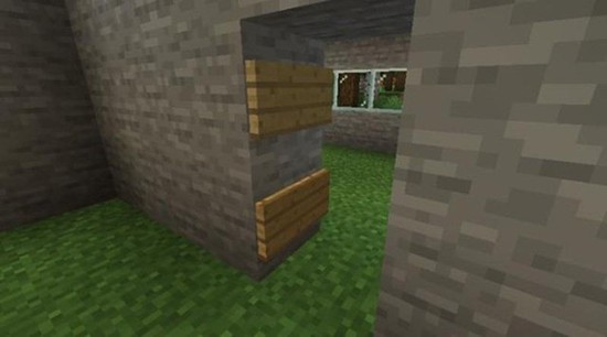 用红石粉连接按钮和铁门,最后用墙壁遮挡红石线路。这样只有知道按钮位置的人才能打开铁门。