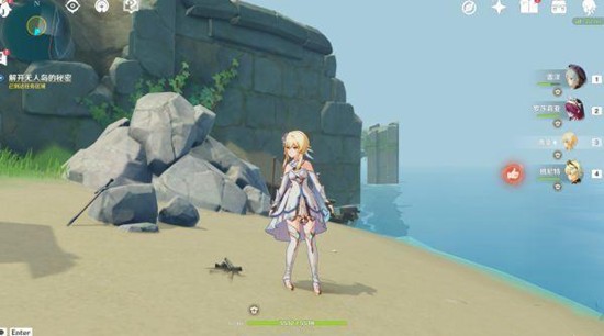靠近无人岛后,首先需要击碎挡路的岩石,随后拾取地上的纸条,上面写着一段拟人化的文字,提示与时间有关的线索。此时需将游戏内的时间调整至凌晨2点,并开启元素视野,观察日晷的变化。在该条件下,日晷会激活并指引下一步行动。