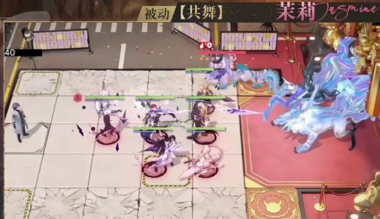 茉莉的被动技能“共舞”是其核心机制之一。战斗开始时,她会自动与距离最近的一名禁闭者建立舞伴关系,并为双方附加舞伴标记。当茉莉释放必杀技时,拥有该标记的队友将获得生命流逝伤害提升效果。这一机制使得茉莉不仅能承担防御职责,还能间接增强队友的持续伤害输出,形成独特的配合链条。