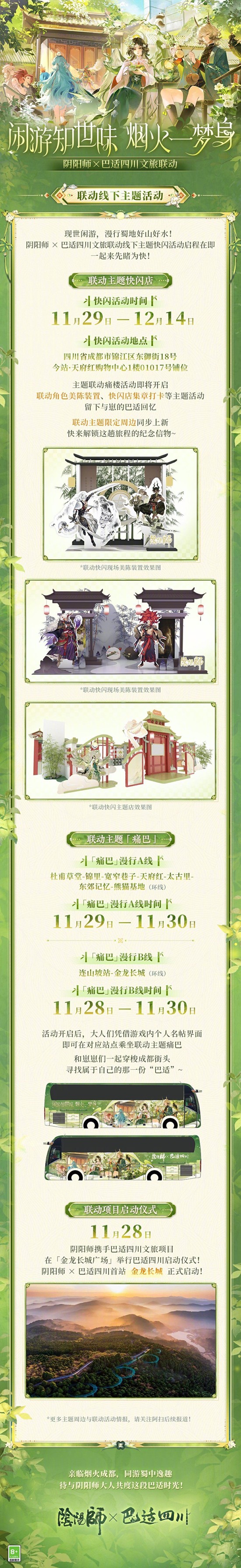 这一切的序幕,将于11月28日在金龙长城广场举行的联动项目启动仪式上正式拉开。让我们共同期待,与《阴阳师》和巴适四川一起,沉浸于这场充满诗意与烟火的秋日闲游。