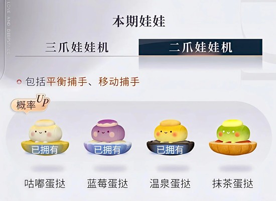 以上就是恋与深空「娃娃机上新」咕嘟蛋挞现已正式加入的全部内容了,更多游戏资讯,攻略内容敬请关注切游网,您的支持是我们努力的动力!