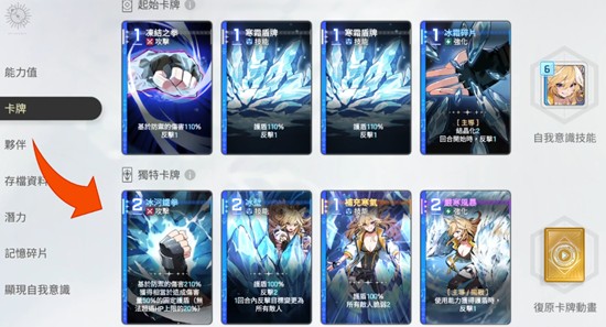 进入卡厄思梦境后,每位角色初始携带的卡牌数量有限,通常为四张基础卡牌,例如玛格纳的冻结之拳、寒霜盾牌和冰霜碎片等。这些卡牌构成了角色在前期战斗的基本手段。随着流程推进,玩家需要通过“灵光一闪”机制来拓展卡组的深度与强度。灵光一闪分为三种类型:基础闪、强化闪和神之一闪,它们分别对应不同的卡牌升级路径,是卡厄思梦境局内养成的核心操作之一。