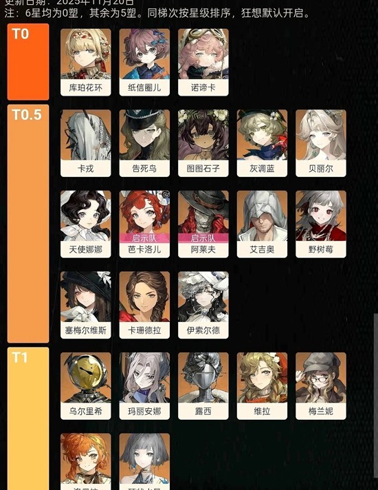 新角色贝丽尔、灰调蓝为T0.5。两个都是输出向角色,一个开辟了新体系余辉队,另外一个拓宽了电能队的可能性,都有不错的强度。