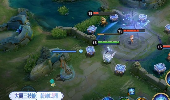 一技能随山定势可以召唤戍鼎击退敌人并为队友提供加速与回血,二技能辟命狩天则提供高速移动和远程攻击能力,三技能乾坤以同则能造成大范围击飞并强化攻击范围。这些技能使大禹成为一个多功能的支援和控制型英雄。