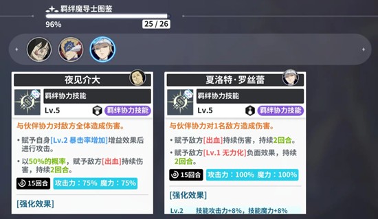 除了核心组合外,同公会角色之间的羁绊也十分实用。例如夜见与凡金斯同属暴牛团,两人同时上阵可激活“暴牛之盾”羁绊,大幅提升队伍的物理与魔法防御。这类防御型羁绊适合搭配高输出但生存能力较弱的角色,形成攻守平衡的阵容结构。而金色黎明团与银翼大鹫团的部分成员之间也存在跨阵营羁绊,这类组合通常基于剧情中的合作经历设定,激活后可获得怒气回复加速或技能冷却缩减等辅助增益。