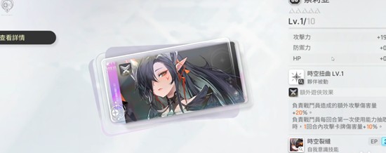 索利亚作为游侠定位的角色,其专武时空扭曲能显著提升主C输出能力。装备后,战斗员造成的额外伤害提高20%,且在一回合内使用攻击类卡牌时,伤害再增10%。该属性与当前版本主流输出角色高度契合,尤其适合搭配雨果等辅助型战斗员,形成连贯爆发。在多轮战斗中,时空扭曲带来的叠加增益效果明显,是追求高伤害输出玩家不可忽视的选择。