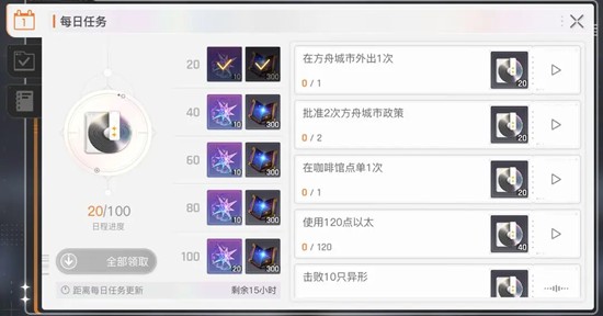 卡厄思梦境的日常任务每天凌晨2点刷新,是玩家每日必做的内容之一。完成这些任务可以获得大量经验值以及角色养成所需的各类资源。玩家通过登录游戏、参与模拟战、消耗体力等方式逐步积累任务积分,当积分达到100点时,即可领取全部奖励。一般情况下,将体力消耗至120点左右,配合几场模拟战,就能顺利达成目标。这一过程操作简单,稳定提供约1500点经验值,对舰长等级的提升具有显著帮助。