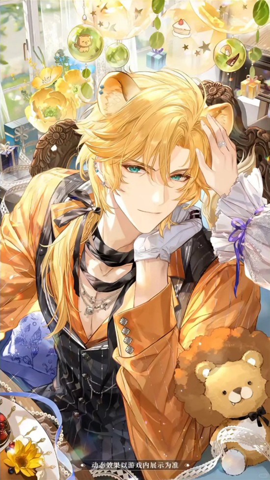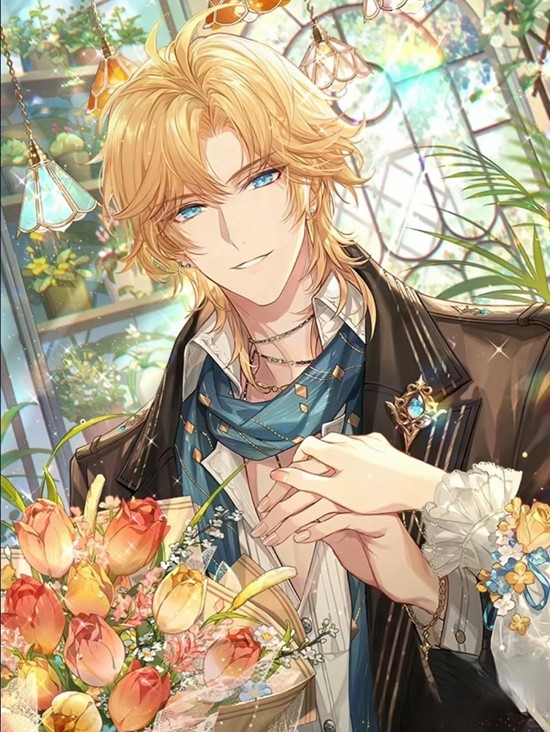 白马额革缀满鲜花,跃动的明黄与他发梢流淌的金芒交织呼应。