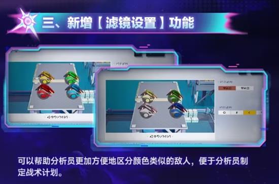 新增DAW/VAG/VAC/MCAW/M/D/M六套色彩滤镜,一键切换,轻松区分颜色相近的敌人,制定集火顺序更高效。