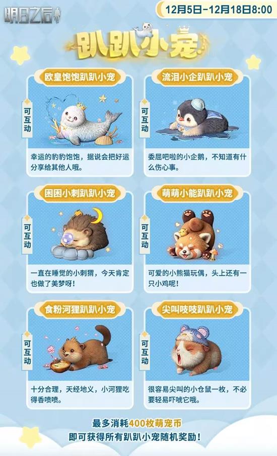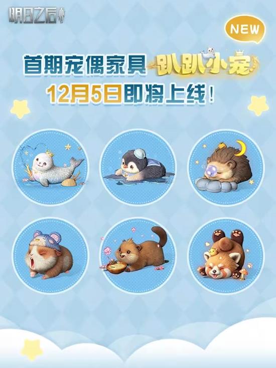 萌即正义,废土也需要软萌治愈。12月5日8点起,明日之后全新【趴趴小宠】系列家具正式限时上架,把“云养宠”搬进庄园。浪花爱心尾摇不停的欧皇饱饱、雪团流泪的小企、抱着蜜橘酣睡的困困小刺,三只小家伙用绒毛与呼噜声击退末日焦虑,幸存者只需靠近即可触发rua摸互动,回血的不只是生命值,还有被丧尸吓麻的小心脏。