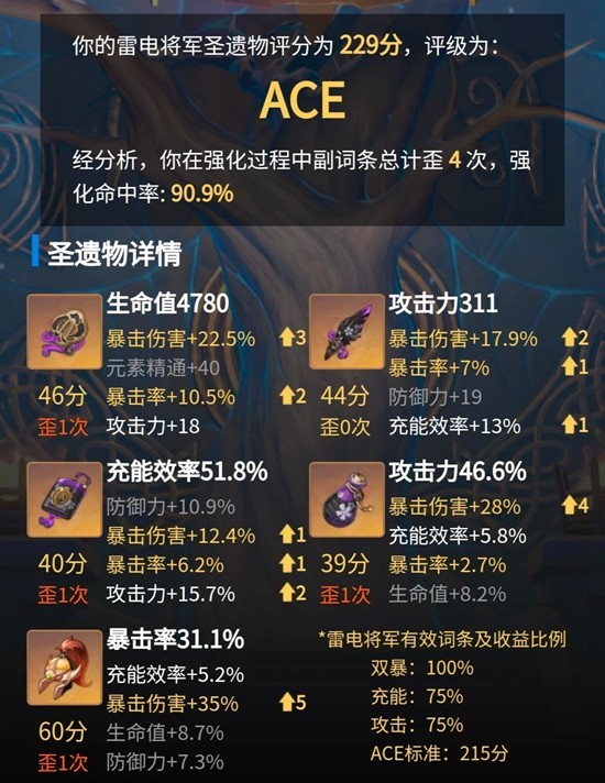 四件绝缘件套装效果基于雷电将军元素充能转化大招伤害,最高转化300%的元素充能,也就是75%的大招伤害。但不要为了这个一味的追求元素充能。