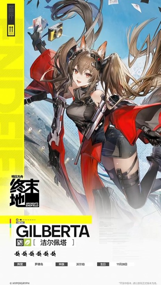 洁尔佩塔来自罗德岛,以信使的身份为终末地工业提供服务。