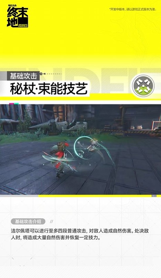 洁尔佩塔可以进行至多四段普通攻击,对敌人造成自然伤害。处决敌人时,将造成大量自然伤害并恢复一定技力。