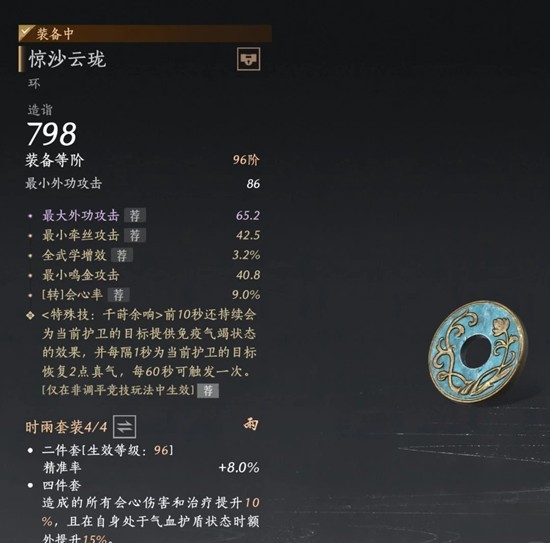 特殊技:千莳余响前十秒免疫气竭;这个真的是能救命的定音,有时候刚挂上伞被连到,此时真气条已经空了,但10s内对面是处决不了我们的,非常能蒸的定音。