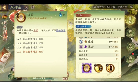 三技能:三火,召回7个面具,拥有善面的友方增加30%行动条,拥有恶面的敌方造成自身攻击130%的间接伤害