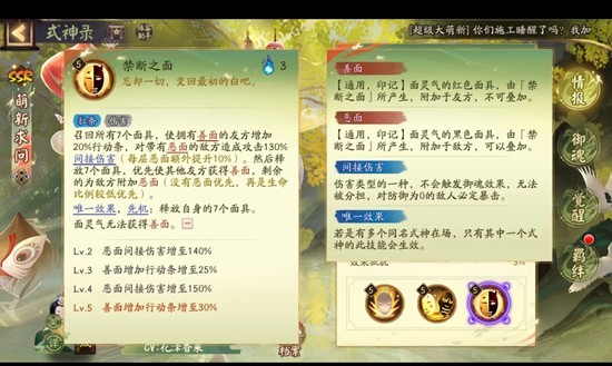 二技能:被动,面灵气先机释放7个面具,5个善面,2个恶面