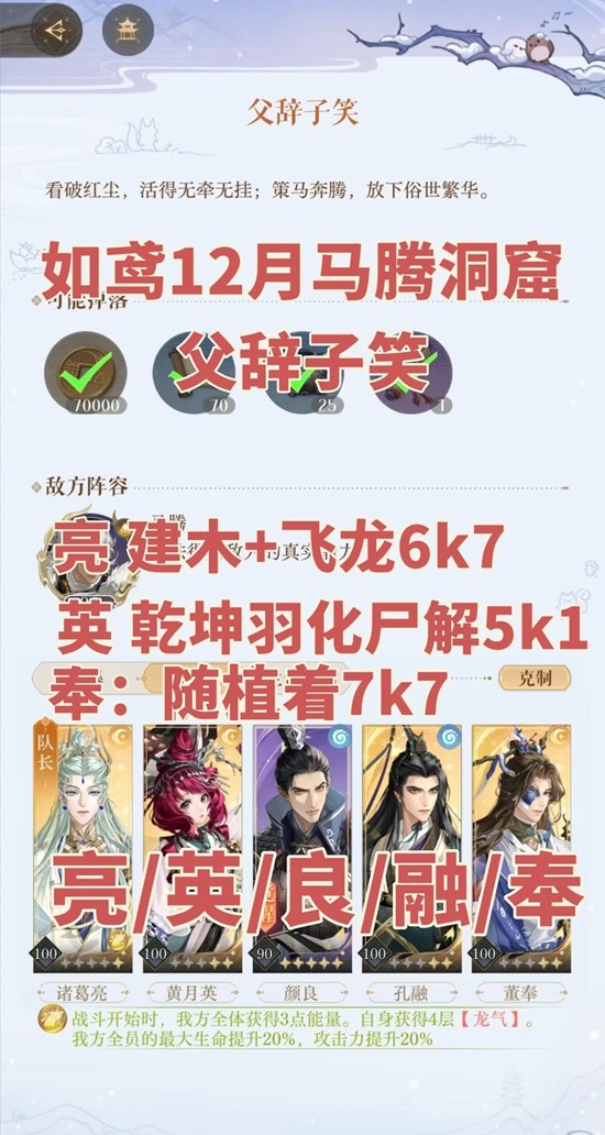诸葛亮:建木+飞龙 1星6k7 有天命最好!!!